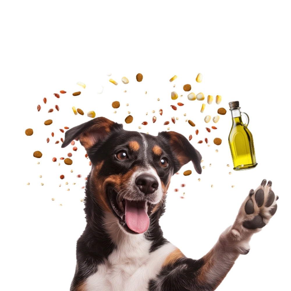 - Ácidos grasos omega-3 y omega-6 (aceite vegetal): fortalecen piel, pelaje y salud cardiovascular .