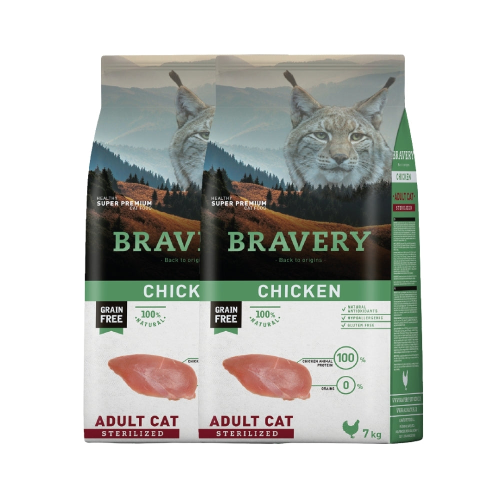 Bravery Adult Cat Sterilized Chicken – 2 bolsas