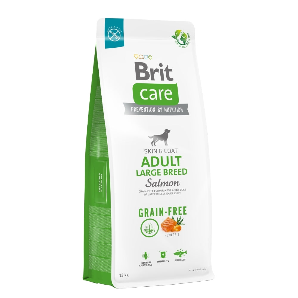 Alimento seco super premium, hipoalergénico y completamente libre de granos. Formulado con salmón deshidratado como única fuente animal y patata como carbohidrato. Incluye condroprotectores, prebióticos y antioxidantes, ideal para perros adultos de razas grandes (> 25 kg).