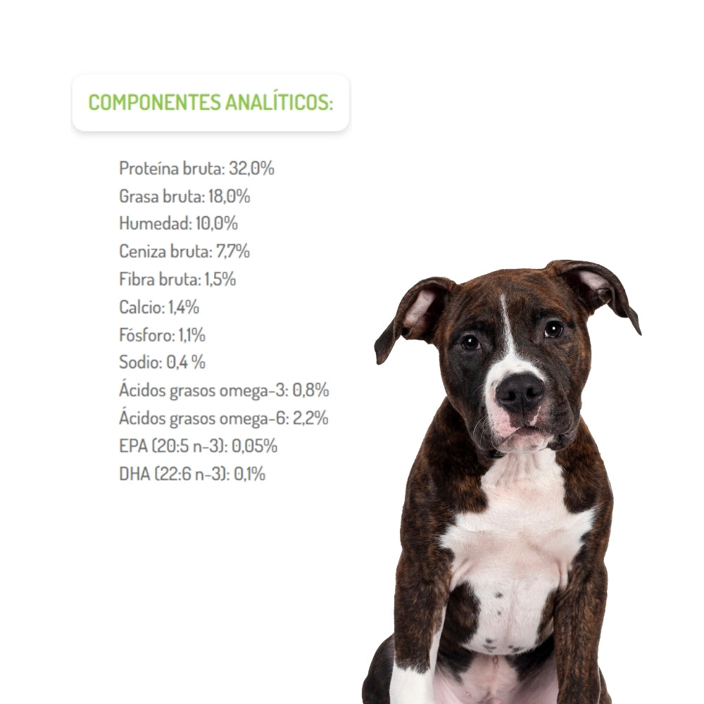 - Perfil nutricional equilibrado: proteína 26 %, grasa 16 %, energía metabólica 3 810 kcal/kg .