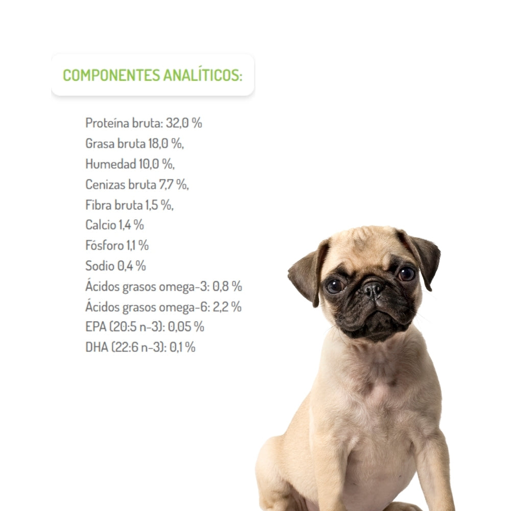 Recomendado para cachorros de todas las razas desde el destete hasta los 12 meses, especialmente aquellos con digestión sensible, alergias alimentarias o en crecimiento supervisado.