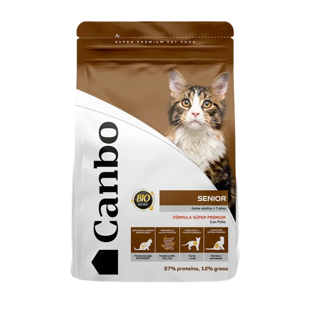 Alimento completo con fórmula Bio Defense®: alto en proteína (37 %), fibra útil, prebióticos (MOS/FOS/GOS), betaglucanos, minerales orgánicos, glucosamina, omega 3‑6 y taurina. Refuerza digestión, defensas, sistema urinario, articular y cardíaco en gatos mayores