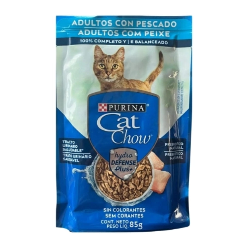 Cat Chow Adultos con Pescado en formato sachet es un alimento húmedo formulado para gatos adultos que buscan sabor y nutrición en cada comida. Elaborado con ingredientes de alta calidad, contiene trozos en salsa con sabor a pescado que resultan altamente palatables y fáciles de digerir. Su contenido de humedad contribuye a una mejor hidratación, especialmente en gatos que consumen poco líquido. Además, está enriquecido con vitaminas y minerales que favorecen el sistema inmunológico, la salud digestiva y el bienestar general del gato.