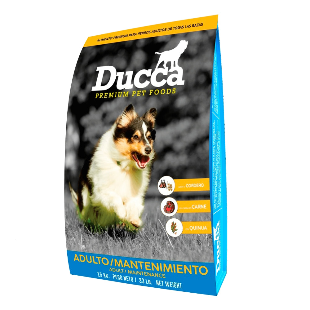 Ducca Adulto Mantenimiento es un alimento seco formulado para perros adultos de todas las razas. Su fórmula equilibrada proporciona los nutrientes esenciales para mantener una buena condición física, energía sostenida y una digestión saludable. Contiene proteínas de origen animal, carbohidratos, grasas, vitaminas y minerales que cubren los requerimientos diarios de un perro adulto sano. Es ideal para perros con actividad física moderada que requieren una alimentación balanceada para su mantenimiento diario.