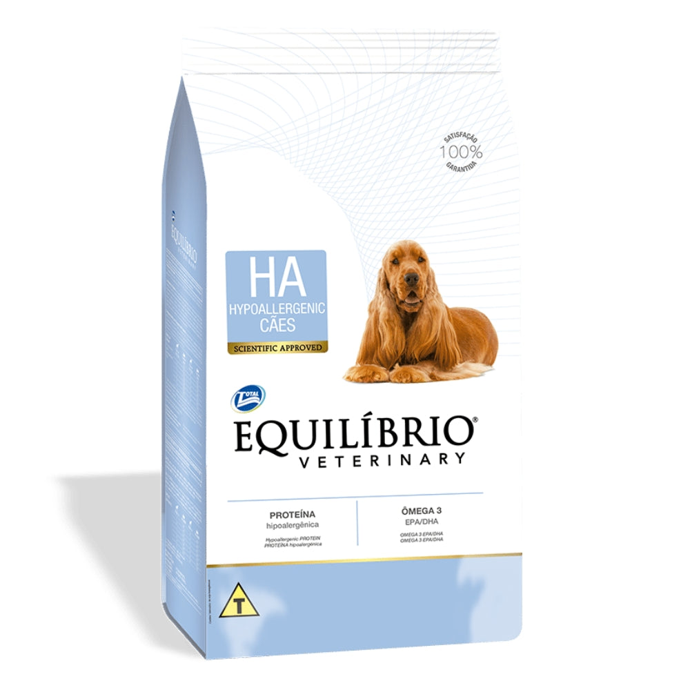 Equilibrio Veterinary Hipoallergenic es un alimento seco de prescripción formulado para perros que sufren alergias alimentarias o sensibilidad digestiva. Su fórmula contiene proteína hidrolizada, lo que reduce significativamente el riesgo de reacciones alérgicas, y está libre de ingredientes comunes que suelen causar intolerancias. También incluye ácidos grasos esenciales, antioxidantes y prebióticos para favorecer la salud intestinal, la función inmunológica y el bienestar general. Es ideal como dieta de eliminación o como manejo a largo plazo de perros con diagnósticos dermatológicos o gastrointestinales relacionados con la alimentación.