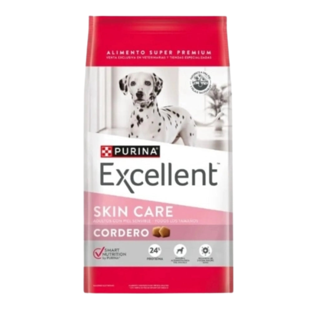 Excellent Skin Care Adultos con Piel Sensible con Cordero es un alimento seco premium desarrollado para perros adultos que presentan sensibilidad cutánea, picazón o pelaje opaco. Formulado con cordero como fuente de proteína de alta tolerancia, junto con ácidos grasos Omega 3 y 6, este alimento favorece una piel sana y un pelaje brillante. También contiene antioxidantes naturales, vitaminas A y E, y minerales quelados que fortalecen las defensas naturales del organismo. Su digestibilidad elevada contribuye a reducir reacciones adversas alimentarias y mejora la calidad de vida del perro.
