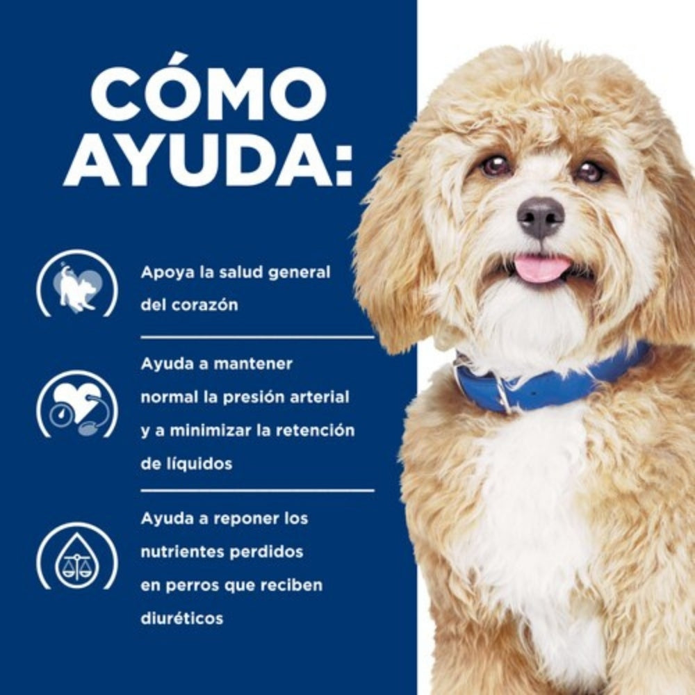 Alimento veterinario para perros con enfermedades cardíacas. Apoya la salud del corazón, controla el sodio y fortalece la función cardíaca.