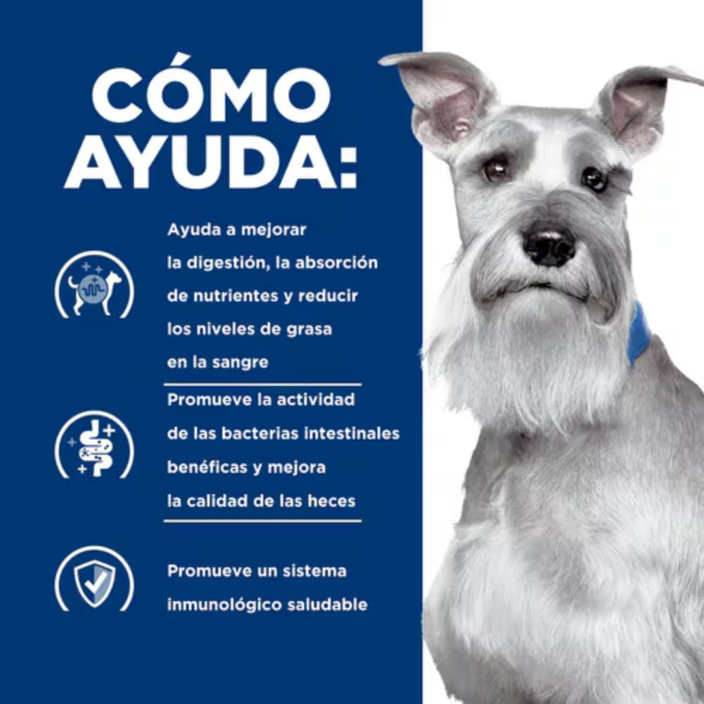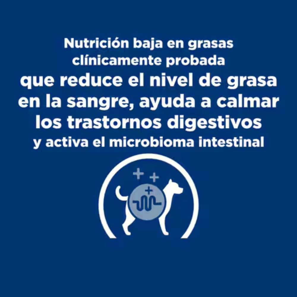 Hill’s Prescription Diet Canine i/d Digestive Care Low Fat es un alimento clínicamente formulado para perros con trastornos digestivos que requieren una dieta baja en grasa, como pancreatitis, hiperlipidemia o enteropatías. Su fórmula altamente digestible favorece la absorción eficiente de nutrientes, mientras que su contenido reducido en grasa ayuda a controlar los niveles lipídicos en sangre. Enriquecido con prebióticos, jengibre y antioxidantes, contribuye al equilibrio de la flora intestinal y fortalece el sistema inmunológico.