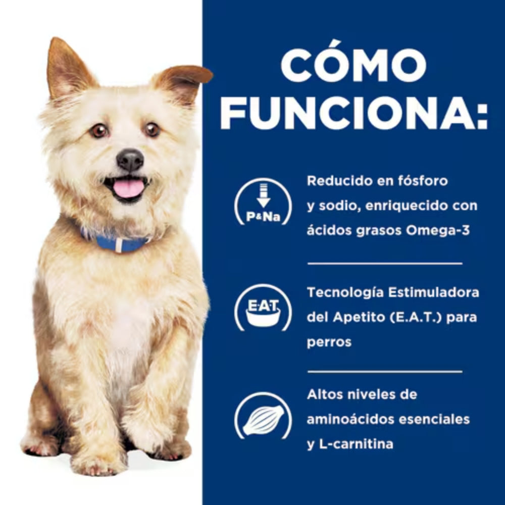 Alimento terapéutico para perros con enfermedad renal crónica. Apoya la función del riñón y mejora la calidad de vida.