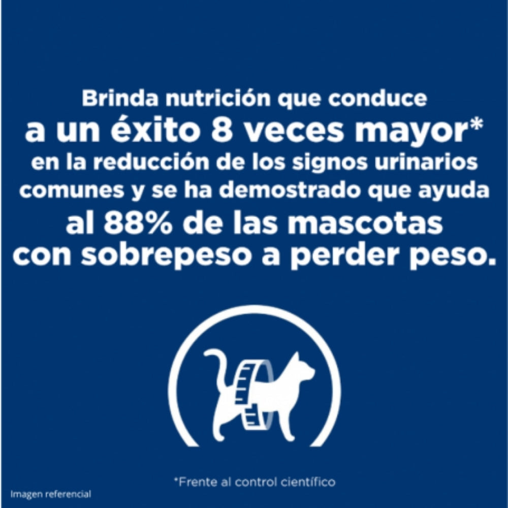 Alimento clínico para gatos que necesitan cuidado urinario y control metabólico. Previene problemas urinarios y ayuda a mantener el peso ideal.