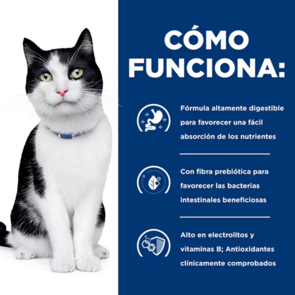 Alimento clínico para gatos con problemas digestivos. Facilita la digestión y promueve la salud intestinal.