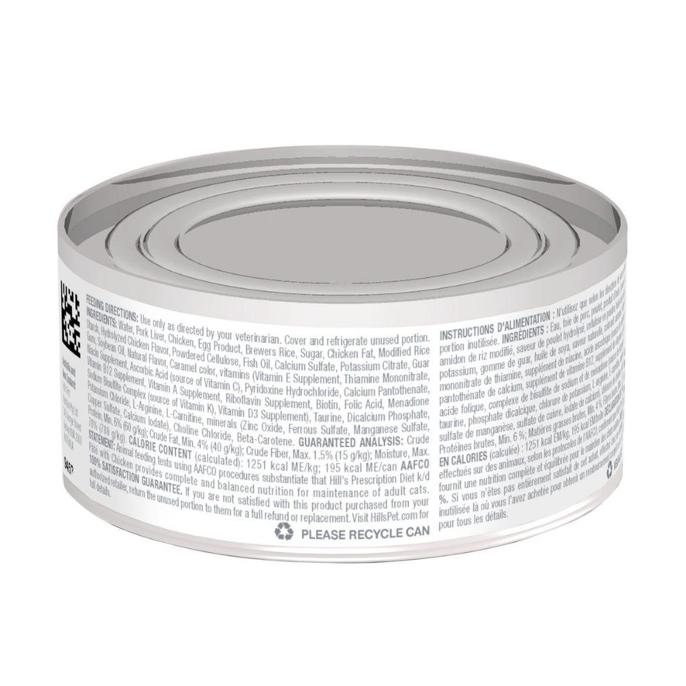 Hill’s Prescription Diet Feline k/d Kidney Care en presentación húmeda está diseñado para gatos con insuficiencia renal o enfermedades renales crónicas. Su fórmula contiene niveles controlados de proteínas y fósforo para reducir la carga sobre los riñones, mientras proporciona nutrientes esenciales para mantener la salud general y fortalecer el sistema inmunológico. Enriquecido con antioxidantes clínicamente comprobados, este alimento húmedo ayuda a proteger las células y mejorar el bienestar del gato durante el tratamiento renal.