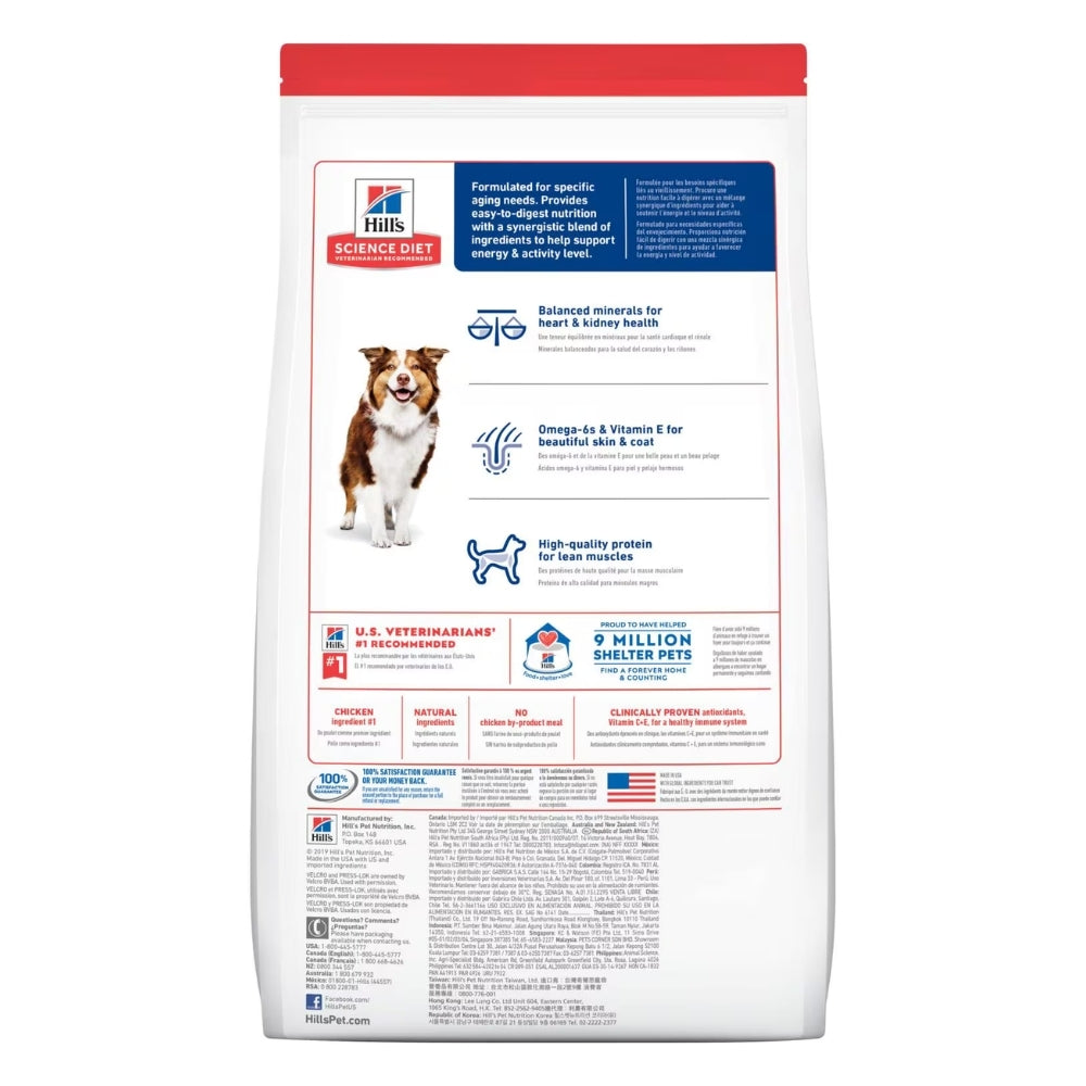 Alimento premium para perros mayores de 7 años. Con pollo y cebada para mantener vitalidad, salud articular y función cognitiva.