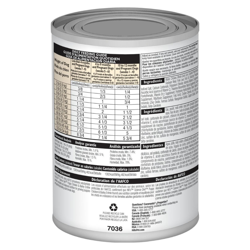 Hill’s Science Diet Puppy en lata está formulado especialmente para cubrir las necesidades nutricionales de los cachorros durante su primer año de vida. Su receta con ingredientes de alta calidad, como pollo y arroz, proporciona proteínas magras para el desarrollo muscular, DHA de aceite de pescado para apoyar el desarrollo del cerebro y la visión, y antioxidantes que fortalecen el sistema inmunológico. Su textura suave y sabor altamente palatable lo hacen ideal para la transición al alimento sólido o como complemento al alimento seco. También es apto para perras gestantes o lactantes.