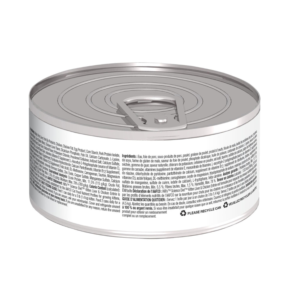 Hill’s Science Diet Kitten Pollo en lata es una fórmula húmeda completa y balanceada para gatitos desde el destete hasta los 12 meses. Elaborado con ingredientes de alta calidad como pollo y arroz, proporciona proteínas magras que favorecen el desarrollo muscular, así como DHA natural del aceite de pescado que contribuye al desarrollo del cerebro y la visión. Su textura suave y sabor irresistible lo hacen ideal para gatitos en transición al alimento sólido o como complemento al alimento seco. También apto para gatas gestantes o lactantes, brinda la nutrición esencial durante las etapas de mayor demanda energética.