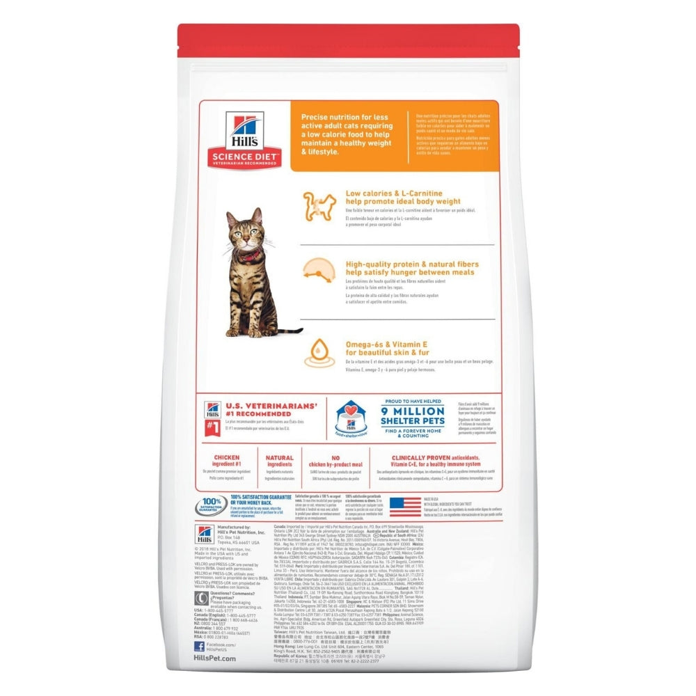 Hill’s Science Diet Light Adult 1–6 Pollo está formulado para gatos adultos de 1 a 6 años con menor nivel de actividad o propensos al sobrepeso. Su receta, elaborada con pollo de alta calidad como ingrediente principal, proporciona proteínas magras para mantener la masa muscular. Contiene un 21% menos calorías que la fórmula Hill’s Adult regular y una mezcla precisa de fibras naturales que ayudan a generar saciedad entre comidas. Además, aporta antioxidantes clínicamente comprobados, Omega 6 y vitamina E para reforzar las defensas, cuidar la piel y mantener el pelaje brillante. Ideal para una pérdida o mantenimiento de peso saludable.