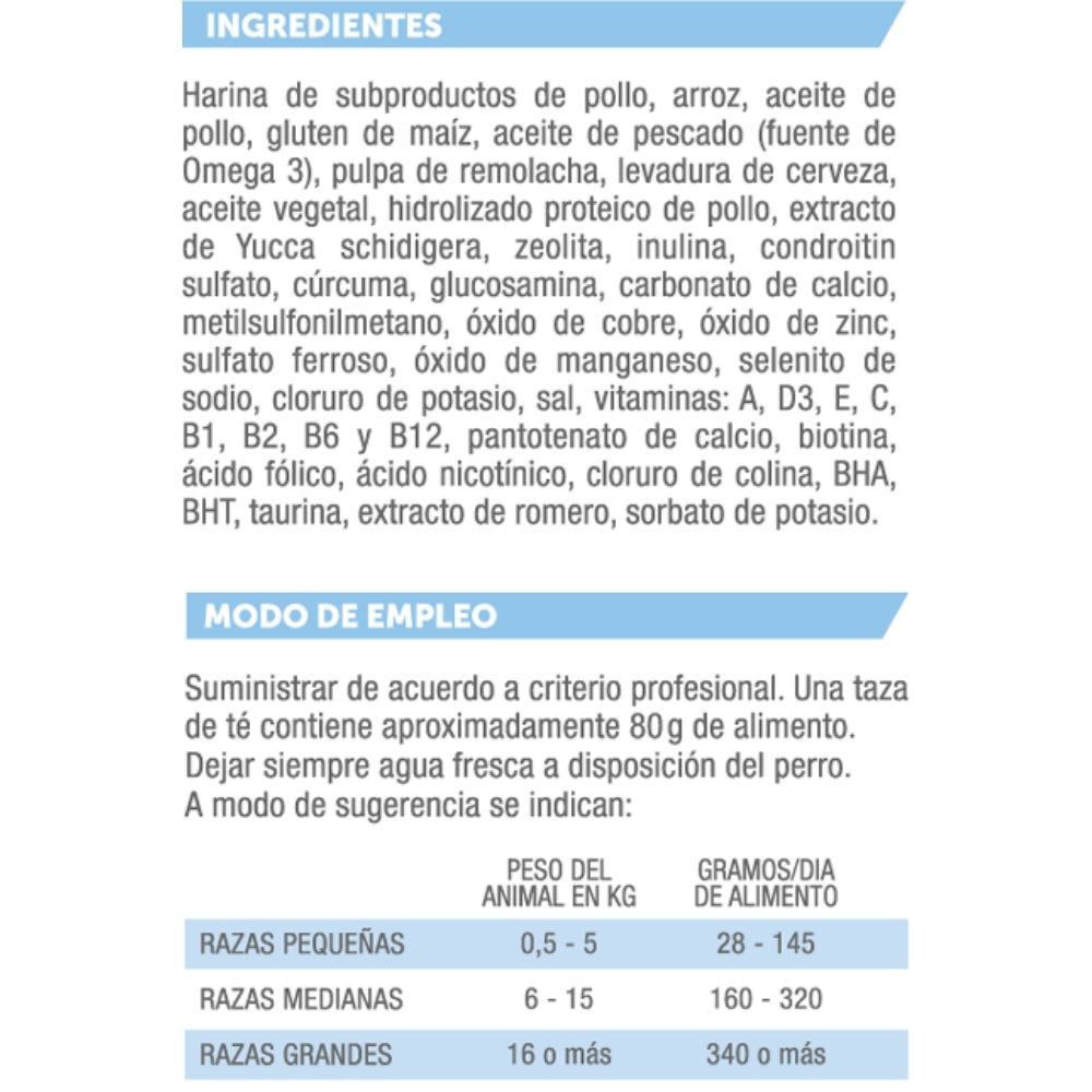 Alimento funcional para perros con problemas articulares. Enriquecido con condroprotectores, Omega 3 y antioxidantes para movilidad, confort y salud osteoarticular.