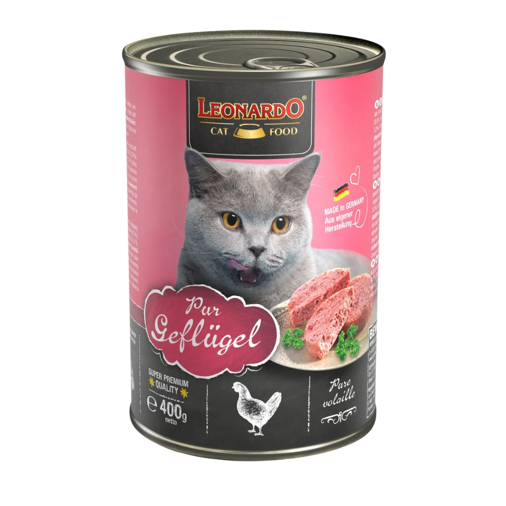 Alimento húmedo super premium con carne fresca de ave. Natural, altamente digestible y muy sabroso, ideal para gatos exigentes o con estómagos sensibles. Favorece la hidratación y la salud general.