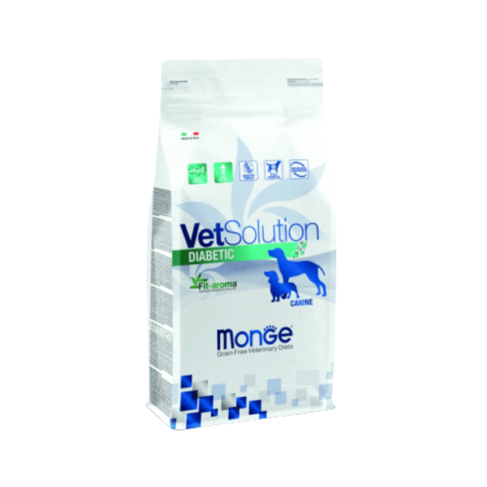 Monge Vet Solution Diabetic Canine es un alimento dietético completo especialmente formulado para perros que requieren control glicémico. Su fórmula contiene un bajo nivel de azúcares y un alto contenido en fibras solubles e insolubles, lo que ayuda a estabilizar los niveles de glucosa en sangre tras las comidas. Enriquecido con L-carnitina para favorecer el metabolismo de las grasas y mantener un peso saludable, además de prebióticos naturales que promueven el equilibrio intestinal. Elaborado con proteínas de calidad y arroz como fuente de carbohidrato de alta digestibilidad. Incluye un práctico contenedor para almacenamiento.