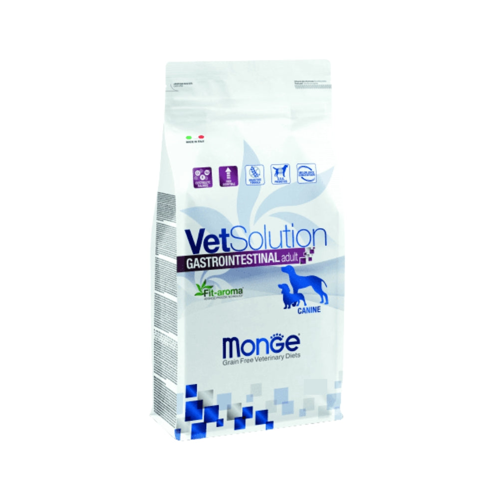 Monge Vet Solution Gastrointestinal Adult Canine es un alimento veterinario completo formulado para ayudar a perros adultos con problemas digestivos, mala absorción intestinal o recuperación tras diarreas agudas. Su fórmula está elaborada con ingredientes altamente digestibles, como el arroz y proteínas de pescado seleccionadas, que reducen la carga digestiva y mejoran la asimilación de nutrientes. Enriquecido con prebióticos (MOS y FOS), aloe vera y nucleótidos que favorecen el equilibrio de la microbiota intestinal, fortalecen la mucosa gástrica y mejoran la respuesta inmune. Ideal como apoyo digestivo bajo control veterinario.