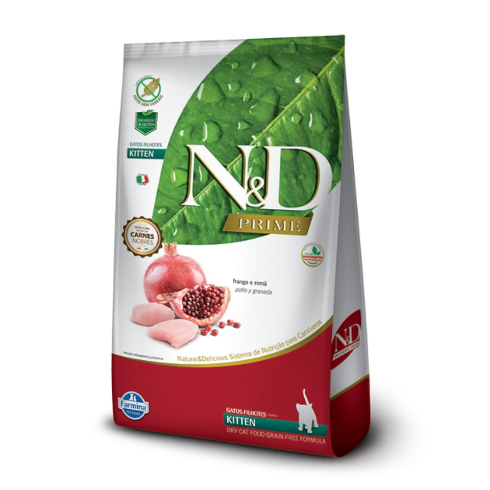 N&D Prime Kitten Pollo y Granada es un alimento completo y balanceado, formulado especialmente para gatitos desde el destete hasta su primer año de vida. Elaborado sin cereales y con pollo fresco como fuente principal de proteína animal, favorece el desarrollo muscular y un crecimiento saludable. La granada aporta antioxidantes naturales que protegen las células en formación y fortalecen el sistema inmunológico. Además, contiene ingredientes funcionales como aloe vera, cúrcuma y prebióticos que estimulan una digestión eficiente, contribuyen al desarrollo del sistema digestivo y promueven la salud general del gatito en su etapa más crítica.
