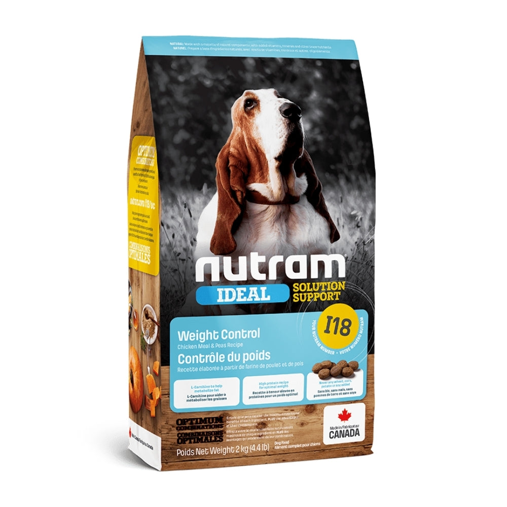 Nutram I18 Weight Control Dog es un alimento seco completo para perros adultos que necesitan reducir o mantener su peso corporal. Su fórmula contiene proteínas magras de alta calidad (pollo y pescado blanco) combinadas con bajo contenido de grasa y L-carnitina, que ayuda a transformar la grasa en energía. Incluye fibra natural de calabaza y avena integral que prolonga la sensación de saciedad, mejora la digestión y contribuye al bienestar intestinal. Además, aporta ácidos grasos esenciales para una piel saludable y un pelaje brillante. Libre de trigo, maíz y soya, es ideal para una nutrición efectiva y natural.