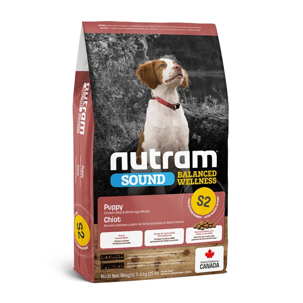Nutram S2 Puppy es un alimento premium formulado para cachorros desde el destete hasta los 12 a 18 meses de edad, según el tamaño de la raza. Contiene proteínas de fácil digestión como pollo y salmón, fundamentales para el desarrollo muscular y estructural durante el crecimiento. Enriquecido con DHA del aceite de salmón, favorece el desarrollo del sistema nervioso y la visión. Incluye ingredientes funcionales como calabaza, linaza, manzanilla y prebióticos naturales que promueven una digestión saludable y refuerzan el sistema inmunológico. Sin trigo, maíz ni soya, ofrece una nutrición natural, efectiva y segura.