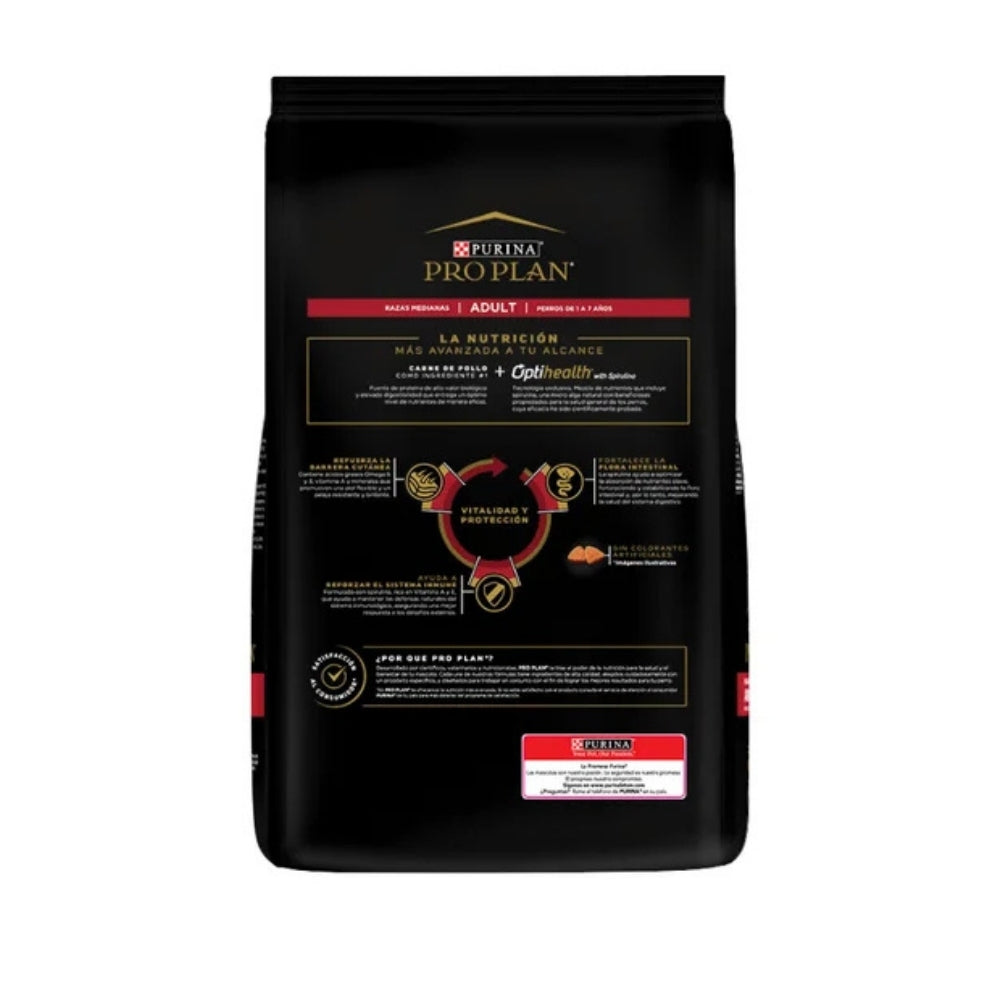 Alimento completo para perros adultos de razas medianas. Con pollo como fuente principal de proteína y una fórmula balanceada que fortalece el sistema inmune, apoya la digestión y mantiene músculos fuertes.