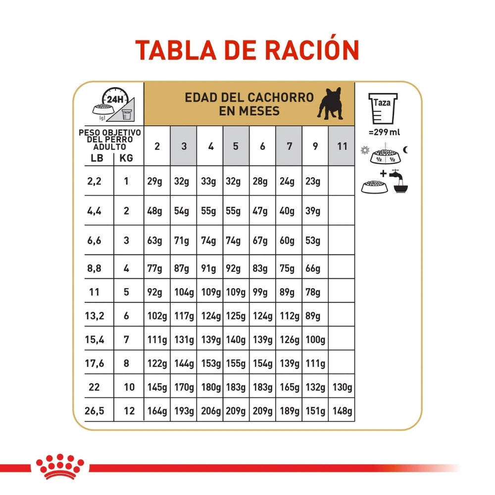 Alimento completo para cachorros Bulldog Francés desde los 2 hasta los 12 meses. Refuerza las defensas, favorece la digestión y promueve un desarrollo muscular saludable.