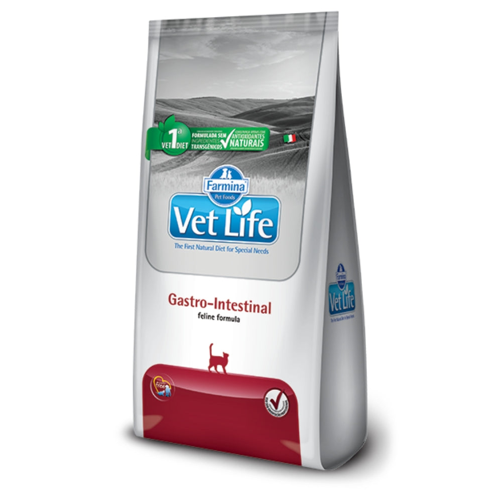 Vet Life Gastrointestinal Feline es un alimento seco dietético formulado para gatos con trastornos agudos o crónicos del sistema digestivo. Su composición con ingredientes altamente digestibles y bajo contenido de grasas ayuda a mejorar la absorción de nutrientes y a regular el tránsito intestinal. Incluye fibras solubles e insolubles, como la pulpa de remolacha, que favorecen una flora intestinal equilibrada. Enriquecido con ácidos grasos omega-3, prebióticos (MOS y FOS), antioxidantes naturales y extractos funcionales que contribuyen a la reducción de la inflamación y refuerzan las defensas naturales. Es ideal para casos de diarrea, gastritis, colitis, mala digestión o recuperación posquirúrgica intestinal.