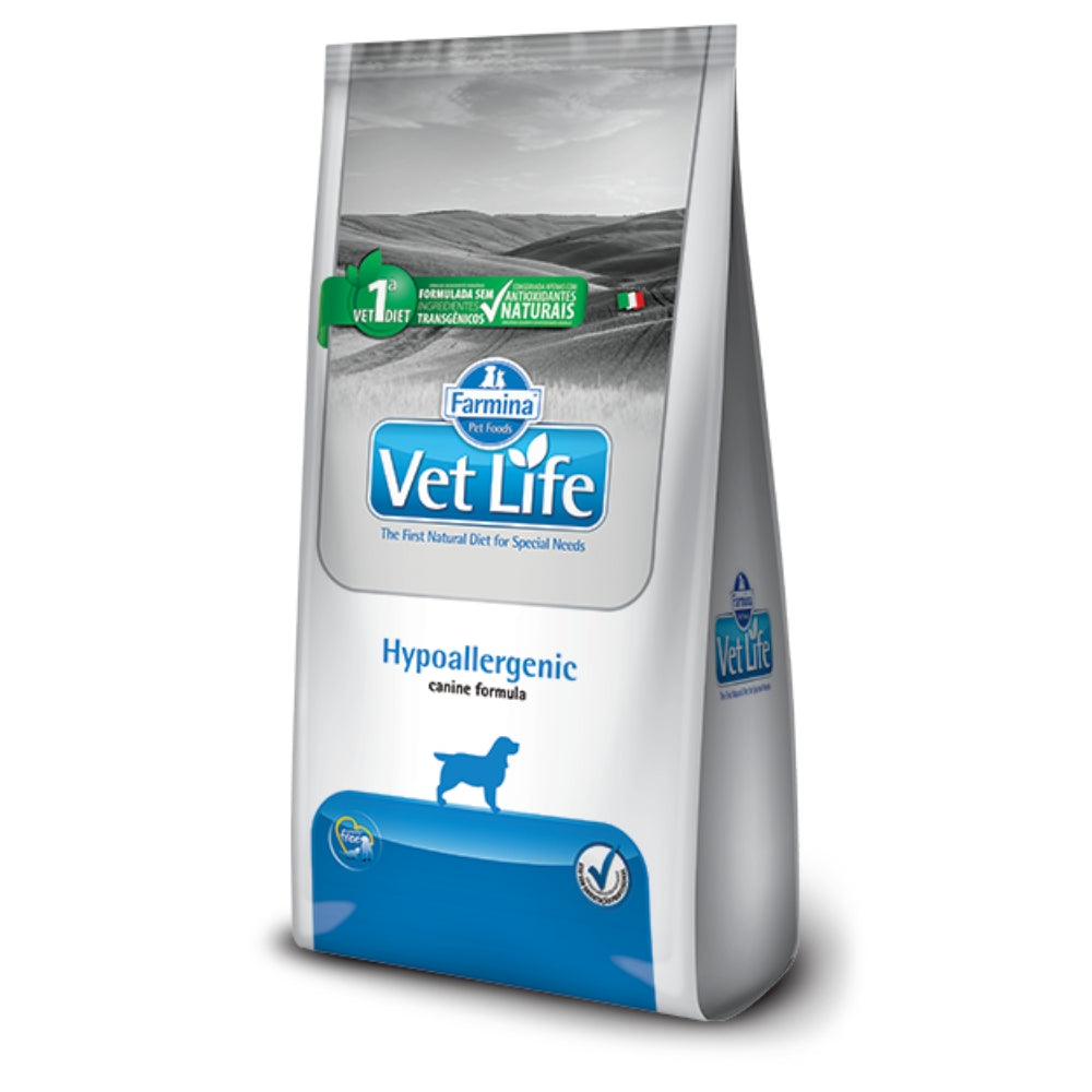 Vet Life Hypoallergenic Canine es un alimento seco dietético formulado para perros con alergias alimentarias o intolerancias a ingredientes específicos. Contiene una única fuente de proteína (pescado) y almidón de arroz como fuente de carbohidrato altamente digestible. Su fórmula ayuda a reducir reacciones adversas al alimento y apoya la salud digestiva, dermatológica y del sistema inmunológico. Está enriquecido con ácidos grasos esenciales omega-3 y omega-6, prebióticos (MOS y FOS), antioxidantes naturales y extractos funcionales que promueven la integridad de la piel, reducen la inflamación y fortalecen las defensas naturales del organismo. Recomendado para dermatitis por alergia alimentaria, otitis crónica, prurito, diarrea crónica o vómitos recurrentes.