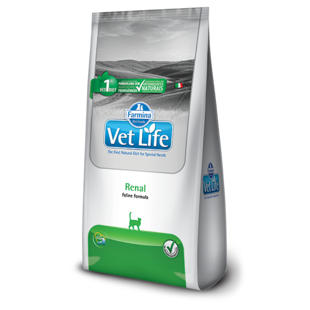 Vet Life Renal Feline es un alimento seco formulado especialmente para gatos que padecen insuficiencia renal crónica o temporal. Su bajo contenido de fósforo y proteínas de alta calidad reduce la carga renal y ayuda a ralentizar el progreso de la enfermedad. Está enriquecido con ácidos grasos omega-3, antioxidantes naturales y vitaminas del complejo B que contribuyen a preservar la función renal, combatir la inflamación y mantener el equilibrio metabólico. También contiene prebióticos y extractos funcionales que promueven una buena digestión y refuerzan las defensas naturales del organismo. Su alta palatabilidad lo convierte en una excelente opción para gatos con apetito reducido.